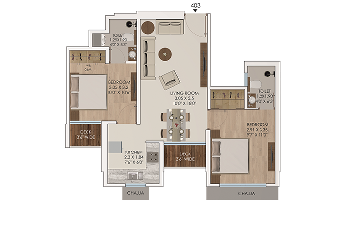 A 34 storey elegantly crafted 2 BHK residences, with its comprehensive & artistically